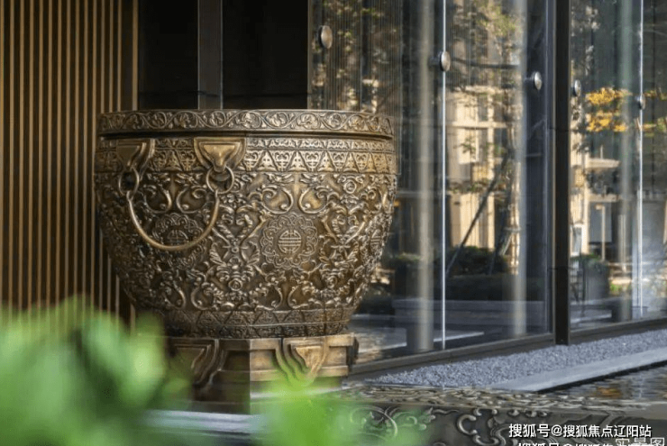 走近金尊府,首先映入眼帘的是恢弘门头,其匾额、门钹、聚宝盆、平枋、门扇皆有典故,凝注能工巧匠之思,将中式府邸演绎得淋漓尽致。